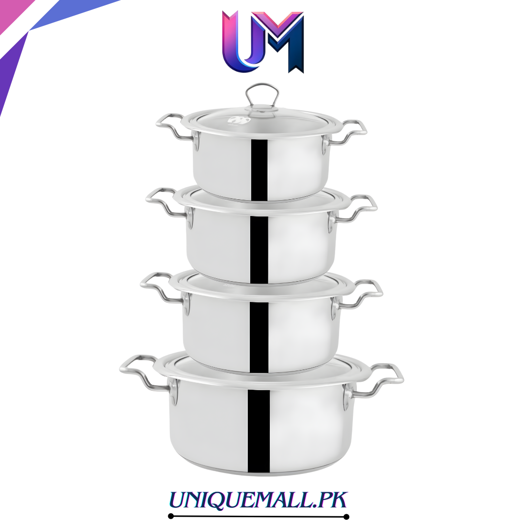 • ✔ Pack of 4 cookware pieces (handi & casserole pots)