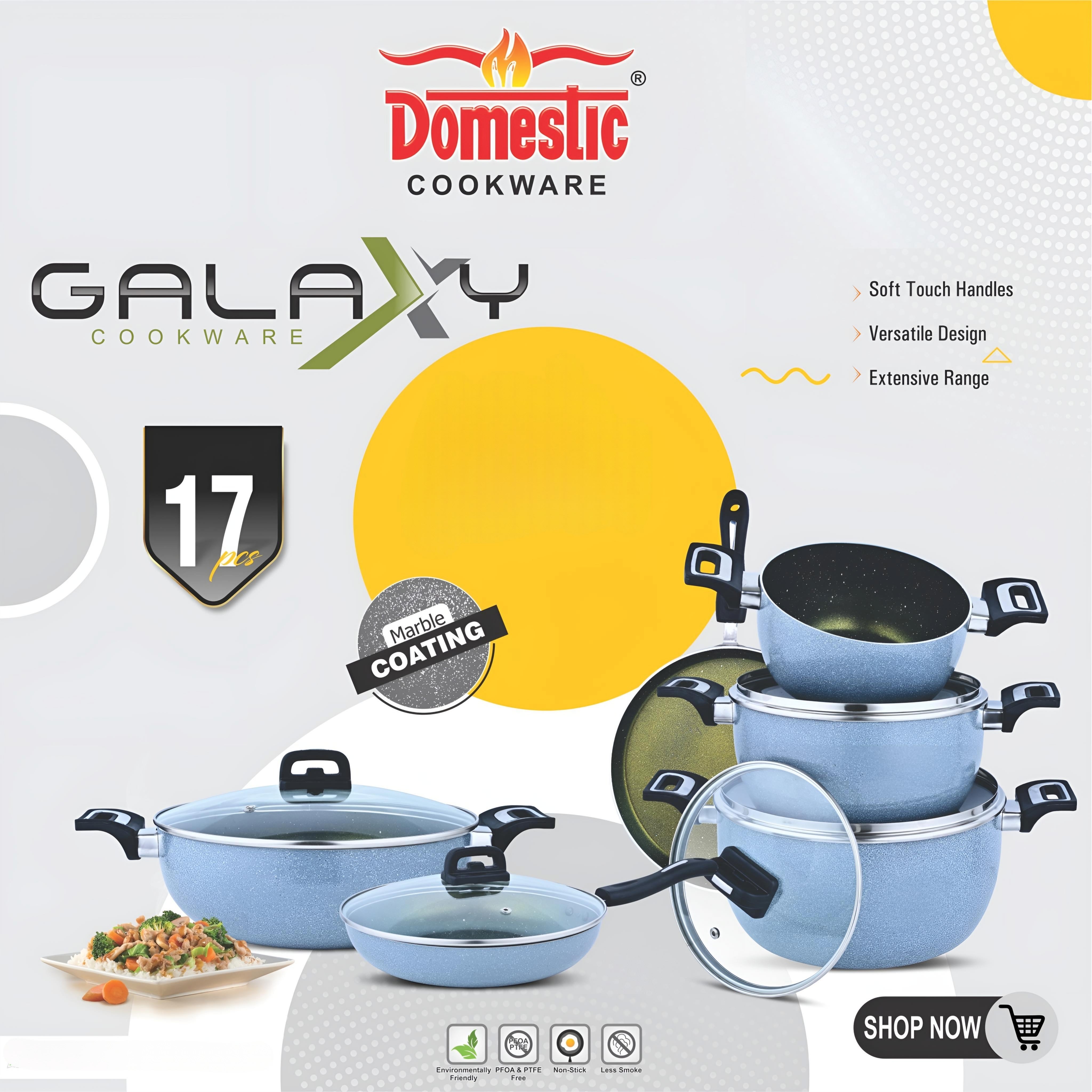 Ideal for daily cooking and gifting on occasions such as weddings, housewarmings, and celebrations, the Domestic Galaxy 17-piece cookware set combines functionality, convenience, and modern design in one complete kitchen solution.