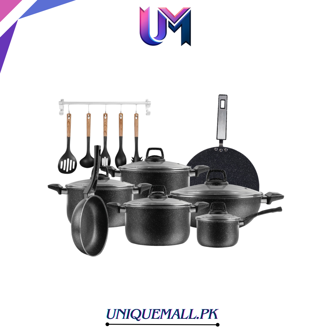 This XELENT Jumbo Marble Coated 19 Pc Gift Set is a complete kitchen solution β€” perfect as a housewarming, wedding, or daily use gift for families and home cooks.